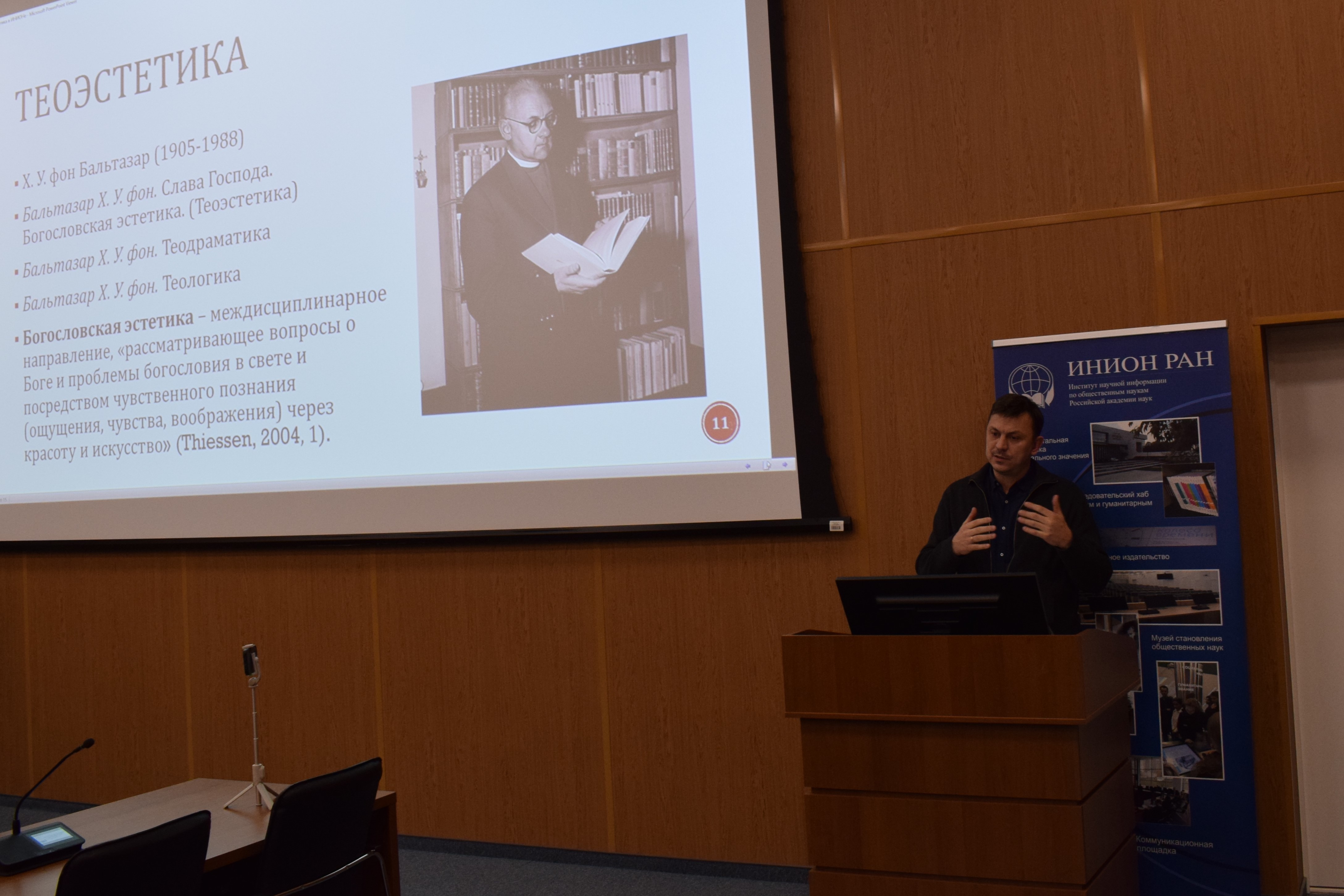 25 января 2024 года состоялось очередное заседание научного семинара «Религия и культура», организованного Отделами философии и культурологии ИНИОН РАН. С основным докладом «Теоэстетика как возможность культурной революции» выступил кандидат философских наук, старший научный сотрудник Сектора современной западной философии Института философии РАН Алексей Михайлович Гагинский.