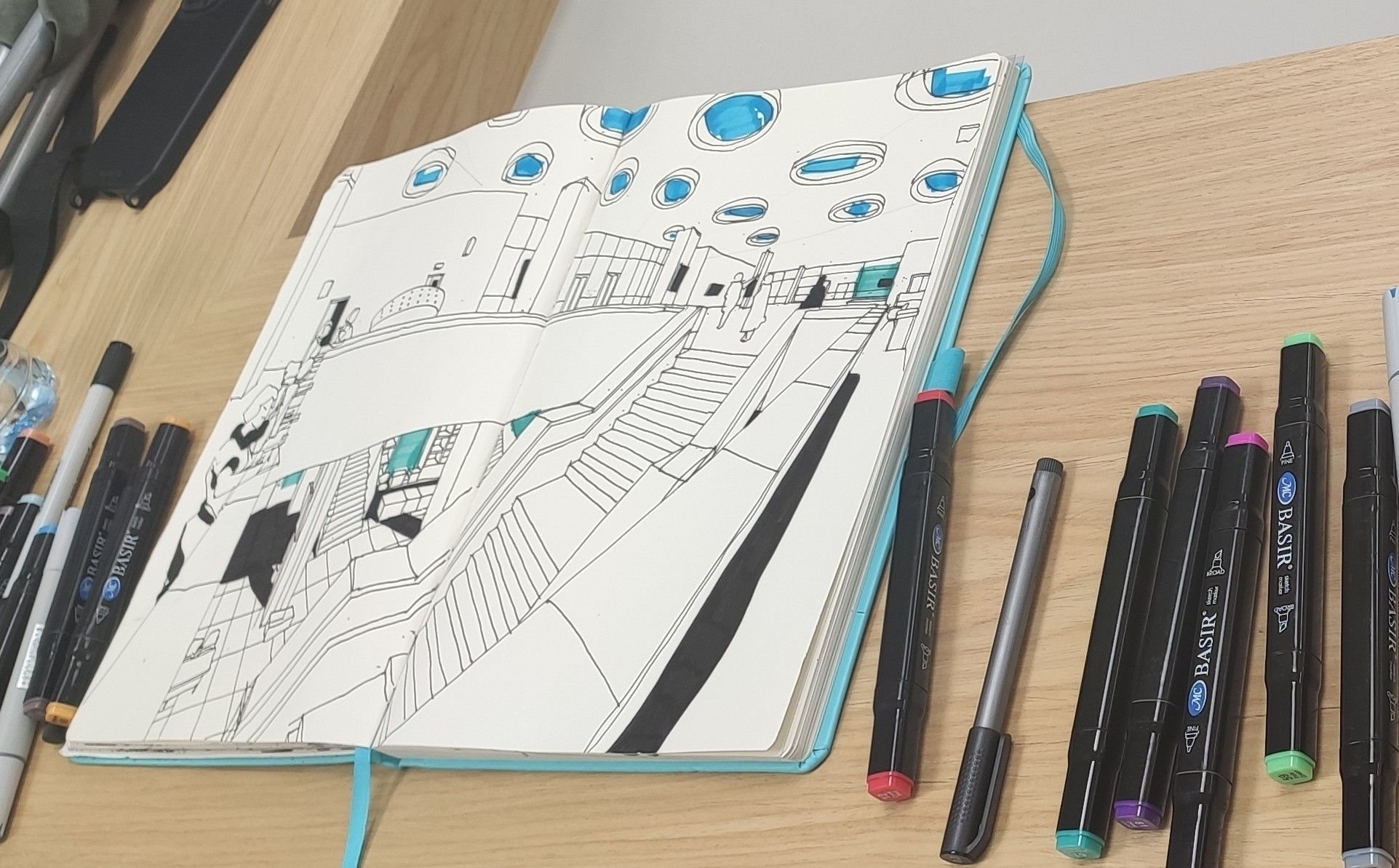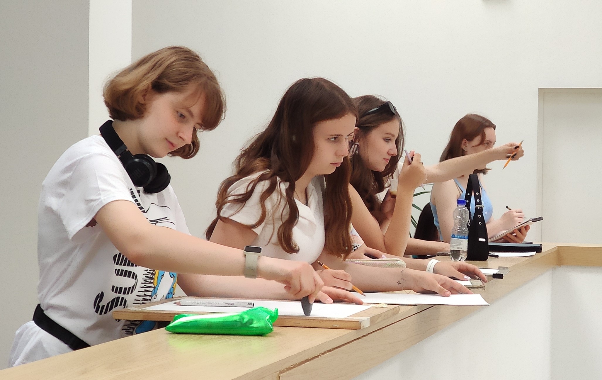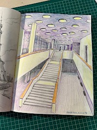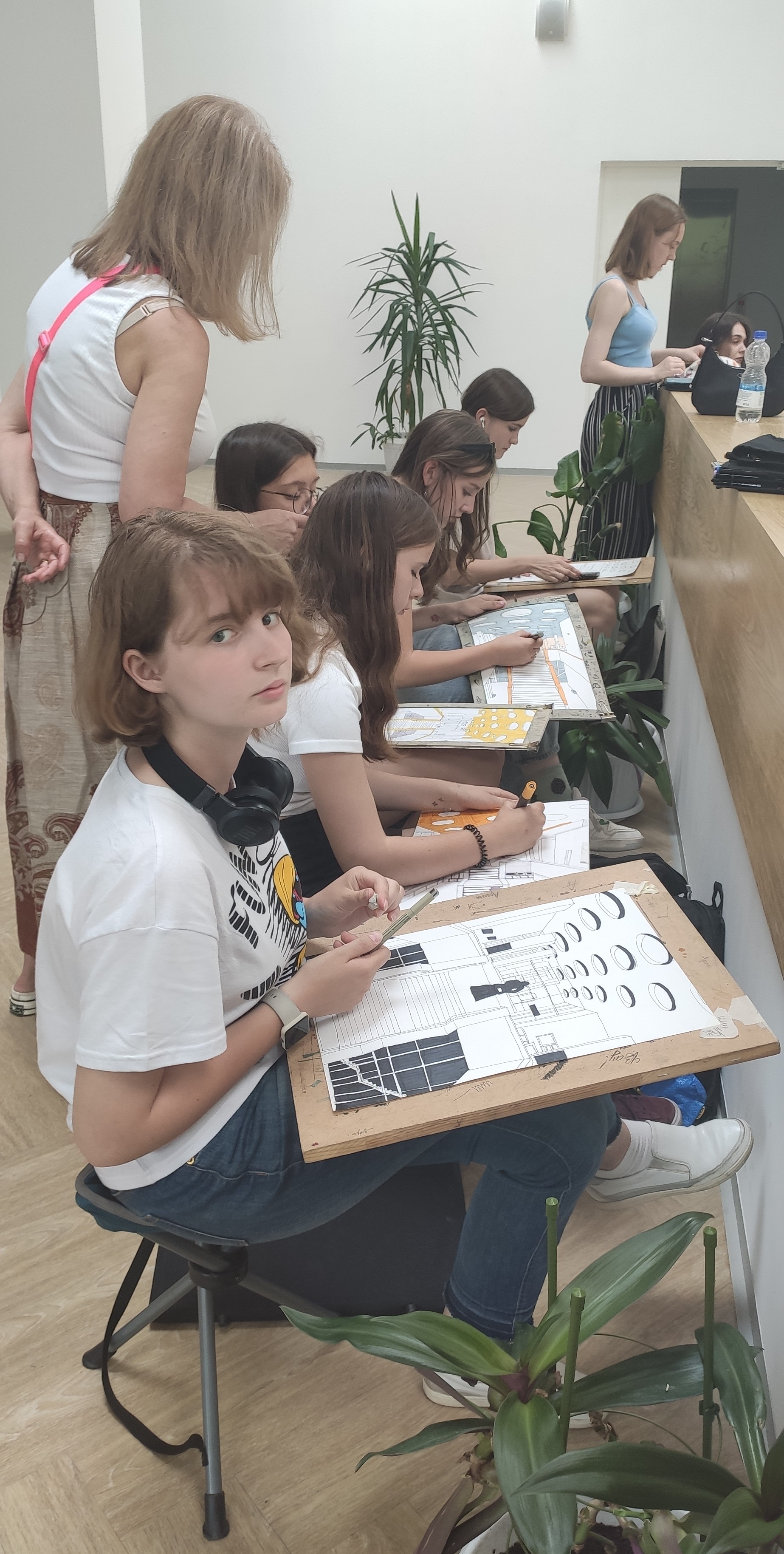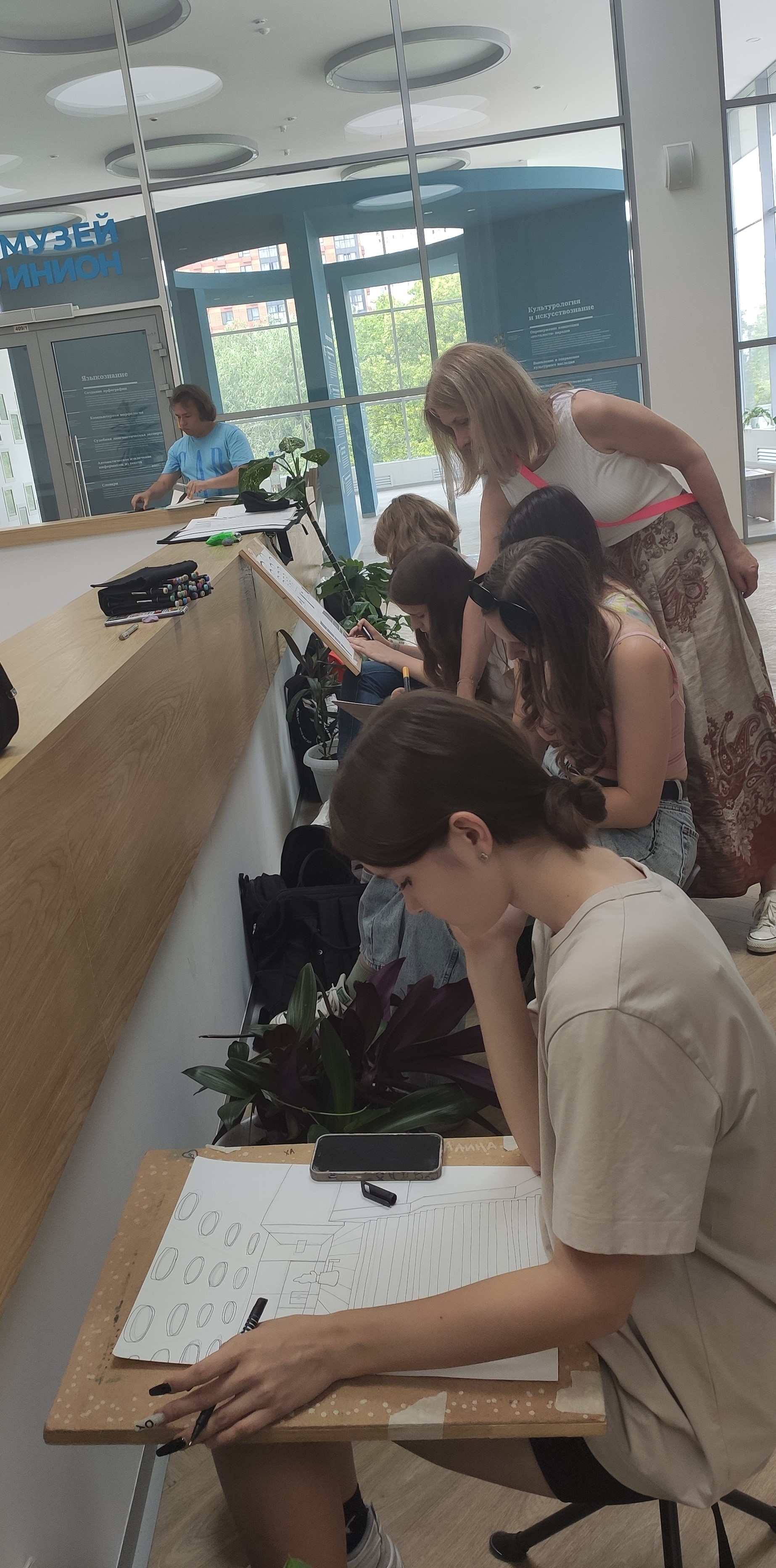 Будущие архитекторы ознакомились с архитектурными решениями в Фундаментальной библиотеке, в Музее становления общественных наук и в конгресс-холле Института, сделали графические зарисовки интерьера и акварельные наброски фасада здания ИНИОН РАН.
