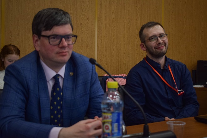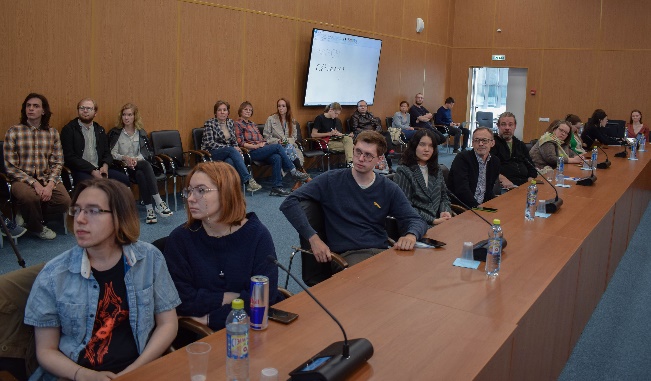 Следом Наталия Оленева (студенческое научное сообщество «Другое средневековье») и Вячеслав Костылев (студенческое научное сообщество МГУ «Axis Mundi»), поблагодарили ИНИОН РАН за сотрудничество и представили докладчика.