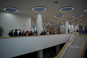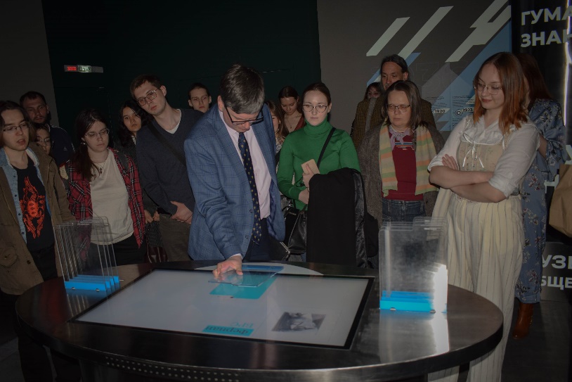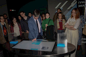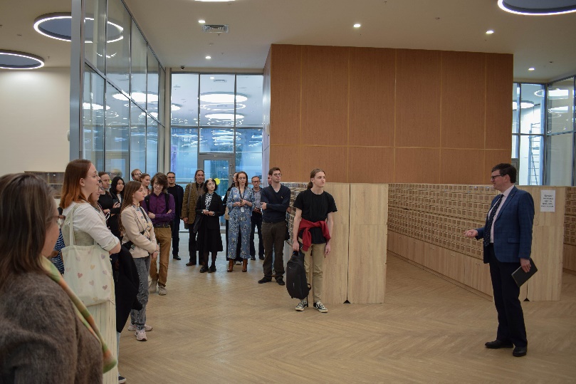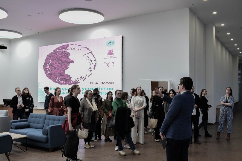 После лекции и ответов на вопросы из зала (с которыми вы можете подробнее ознакомиться в записи, директор ИНИОН РАН, Алексей Кузнецов провел для всех гостей мероприятия экскурсию по читальным пространствам и музею ИНИОН РАН, а также временным и постоянным книжным экспозициям.