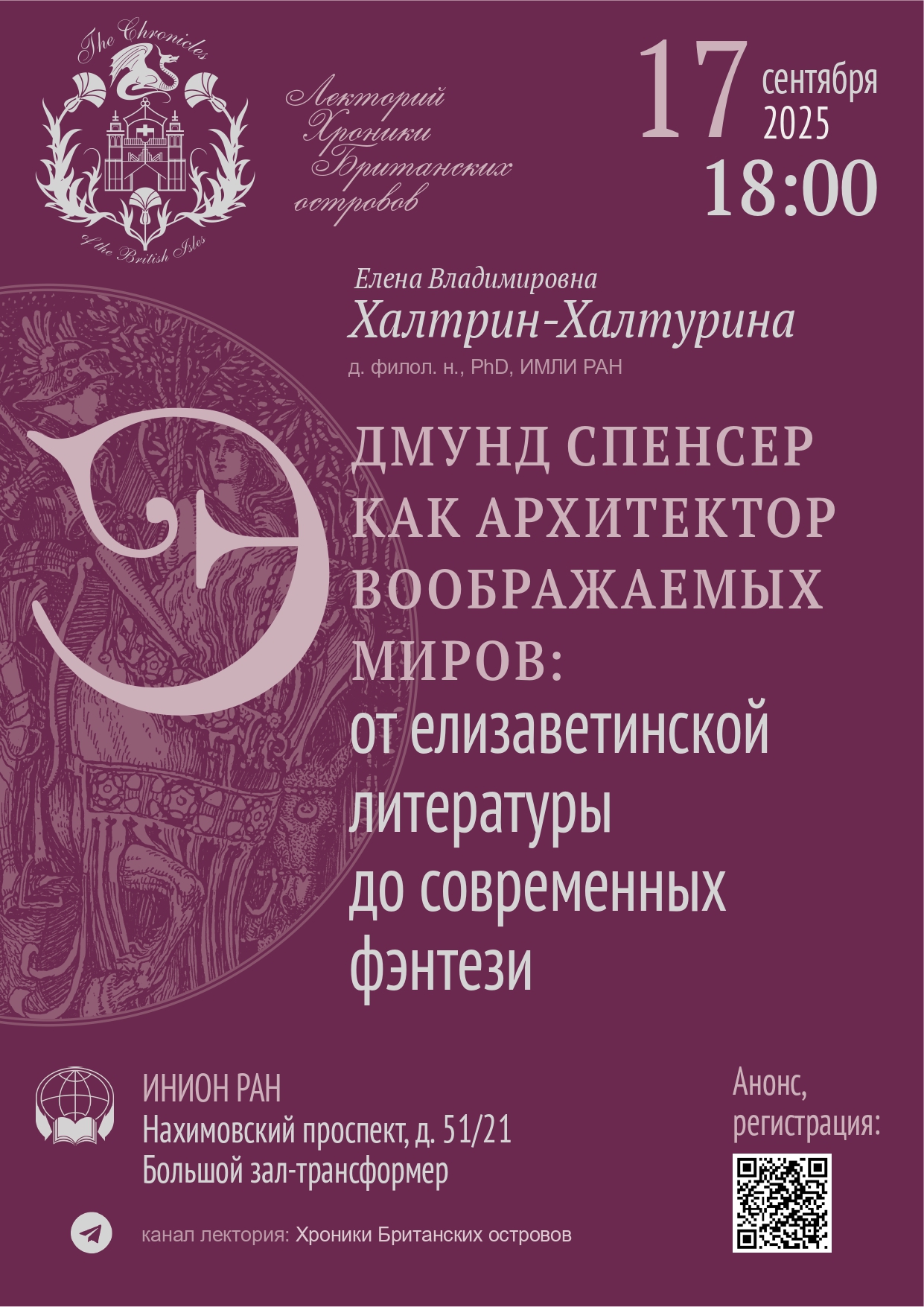 17 сентября 2025 года (18:00, большой зал-трансформер) в рамках филолого-культурологического лектория «Хроники Британских островов» состоится лекция на тему