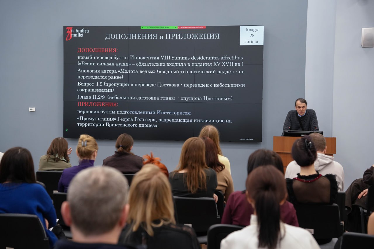 10 апреля 2025 года в рамках религиоведческого лектория Re-ligare ИНИОН РАН состоялась лекция «В тени "Молота ведьм": Генрих Инститорис и другие авторы сочинений о колдовстве».