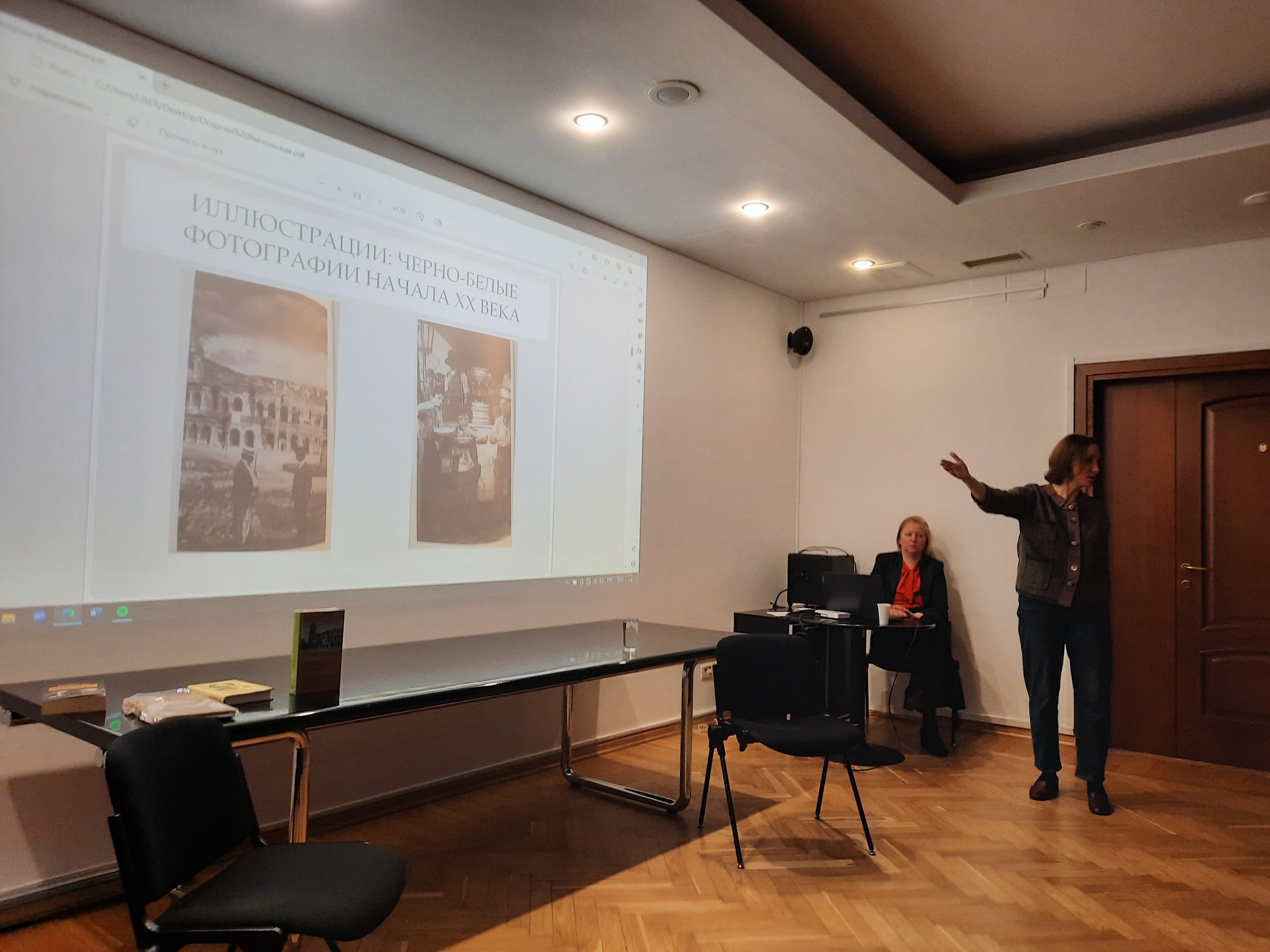 20.12.2023 Валерий Петрович Любин, д.и.н., гнс Отдела истории ИНИОН РАН выступил с лекцией «Италию мало видеть, ее нужно знать...» (М.А. Осоргин и его «Очерки современной Италии») в Институте итальянской культуры в Москве. Во второй части вечера к.ф.н. А.В. Ямпольская (Литературный институт им. Горького) проиллюстрировала слайдами новое издание этой книги. На вечере присутствовали 45 слушателей: итальянисты, преподаватели и студенты московских вузов, в которых изучают Италию, итальянский язык и литературу.