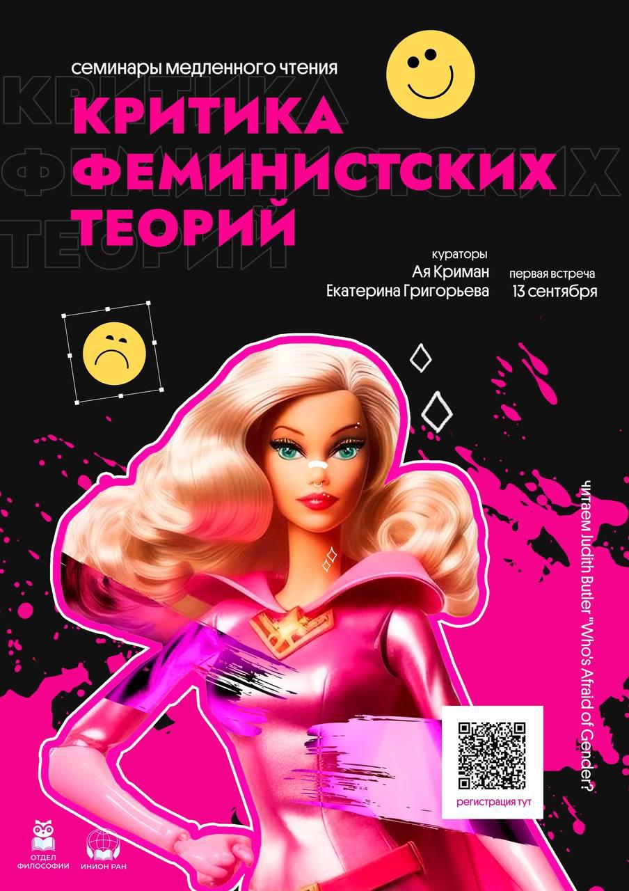 В пятницу 13 сентября 2024 года в 18:30 в зале заседаний Диссертационного совета пройдет первая встреча в рамках цикла семинаров медленного чтения «Критика феминистских теорий». Встречи будут регулярными, раз в две недели.