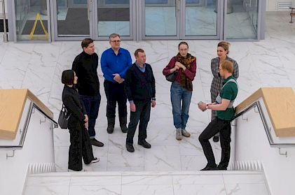 По холлам, библиотечным и техническим пространствам гостей института провели менеджер проекта департамента по строительству объектов науки и образования ППК «Единый заказчик» Никита Сафонов и руководитель пресс-службы компании Мария Ермакова. Заместитель директора ИНИОН РАН по библиотечной работе Л.В. Юрченкова рассказала о библиотеке и фондах, а заведующий НИО библиотековедения С.В. Соколов рассказал о научной работе Института и электронных информационных ресурсах.