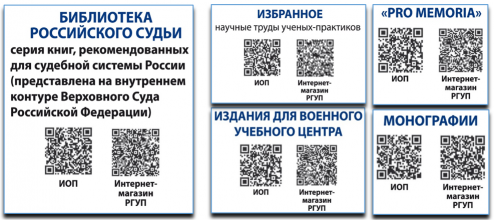 «Библиотека российского судьи»; «Избранное», «Pro memoria», «Монографии», «Учебные издания».
