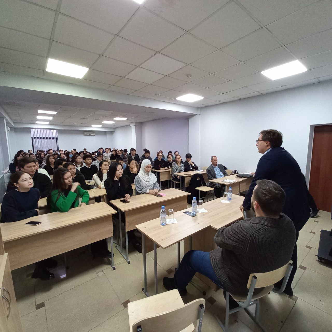 30 октября состоялась встреча с представителями Посольства России в Казахстане, а также лекции В.А. Аваткова и Д.А. Егочренкова перед студентами Высшей школы социально-гуманитарных наук Международного университета Астаны.