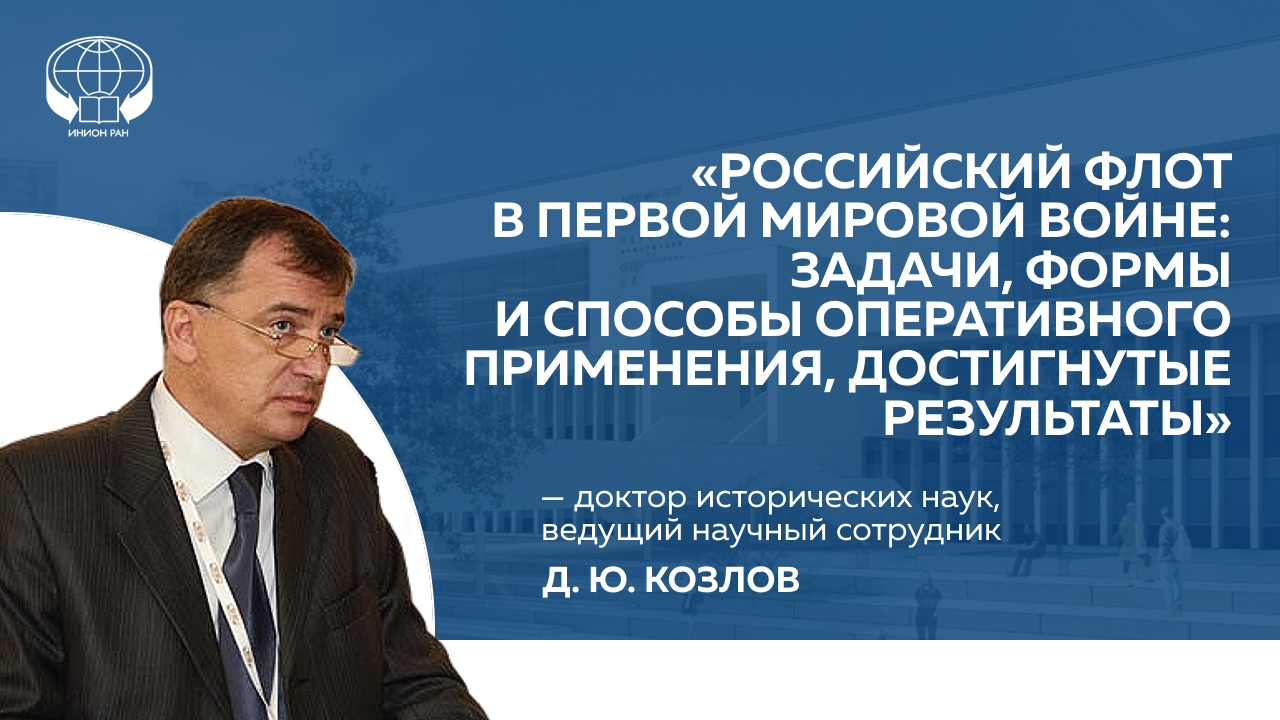 12 ноября в 15:00 в большом зале-трансформере ИНИОН РАН состоится открытая лекция доктора исторических наук, ведущего научного сотрудника Института российской истории РАН Дениса Юрьевича Козлова на тему «Российский флот в Первой мировой войне: задачи, формы и способы оперативного применения, достигнутые результаты».