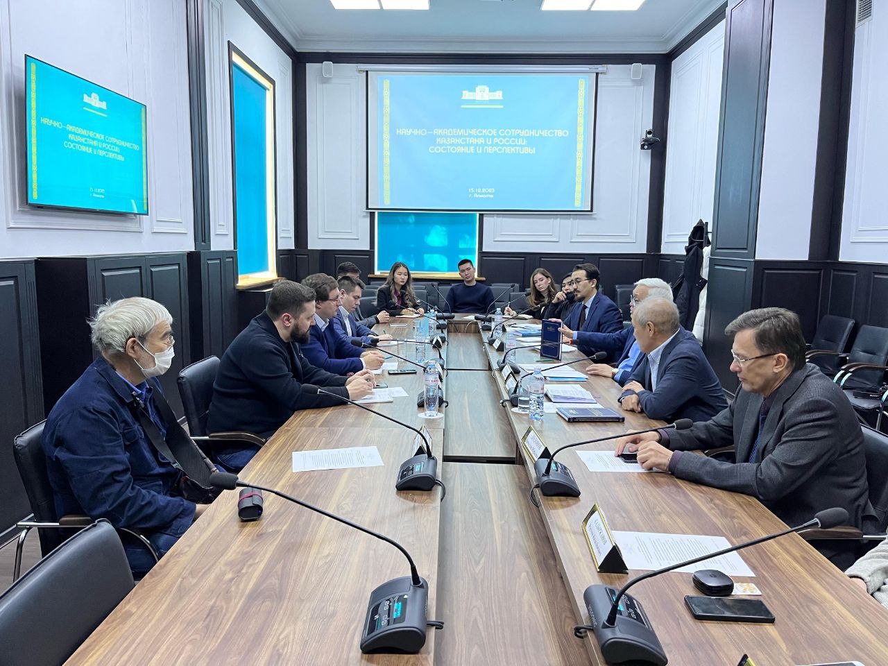 На площадке Института философии, политологии и религиоведения Комитета науки Министерства науки и высшего образования Республики Казахстан прошел круглый стол «Научно-академическое сотрудничество Казахстана и России: состояние и перспективы», приуроченный ко Дню независимости Республики Казахстан. В.А. Аватков выступил с докладом о внешней политике Турции в год столетия Республики, а Д.С. Крылов представил результаты исследования кризиса современной системы международных отношений и антиколониальным процессам на Ближнем и Среднем Востоке. Была осуществлена дискуссия относительно наращивания сотрудничества между ИНИОН РАН и ИФПР.