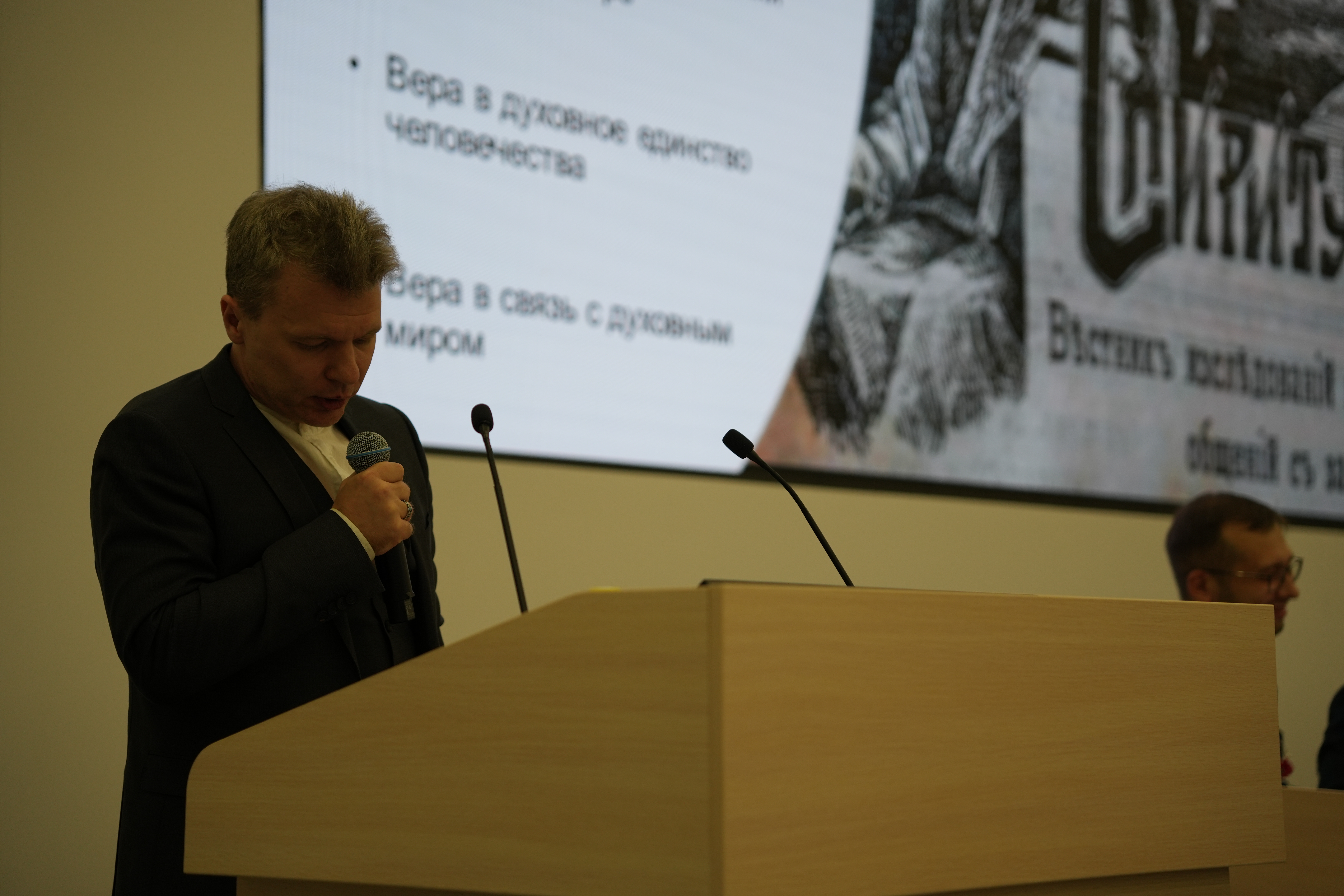 Переходя к культурному аспекту спиритуализма, лектор отметил три вида деятельности, организованных вокруг события «спиритического сеанса», как ключевой формы спиритуализма, – научные, религиозные и развлекательные практики.