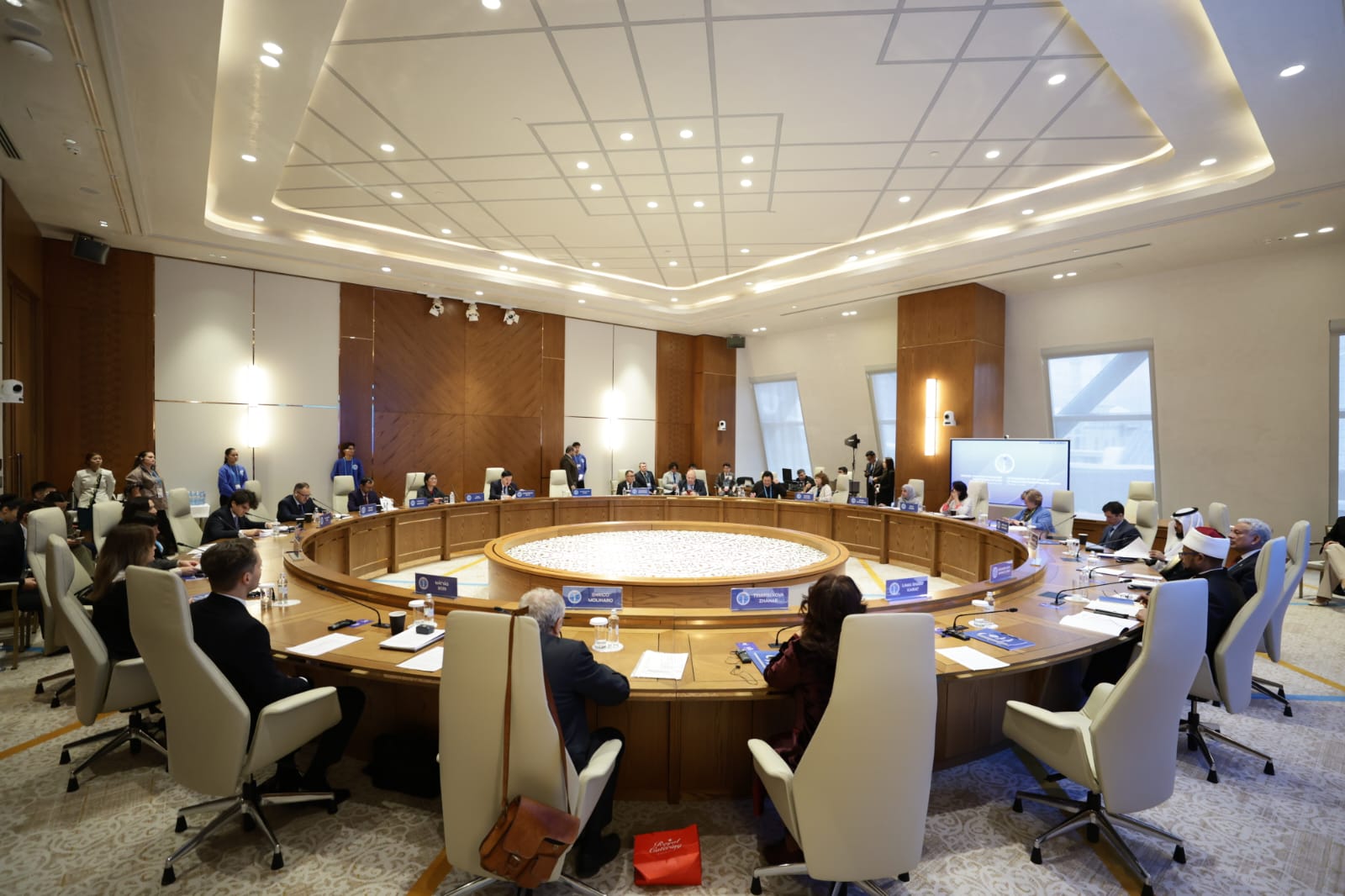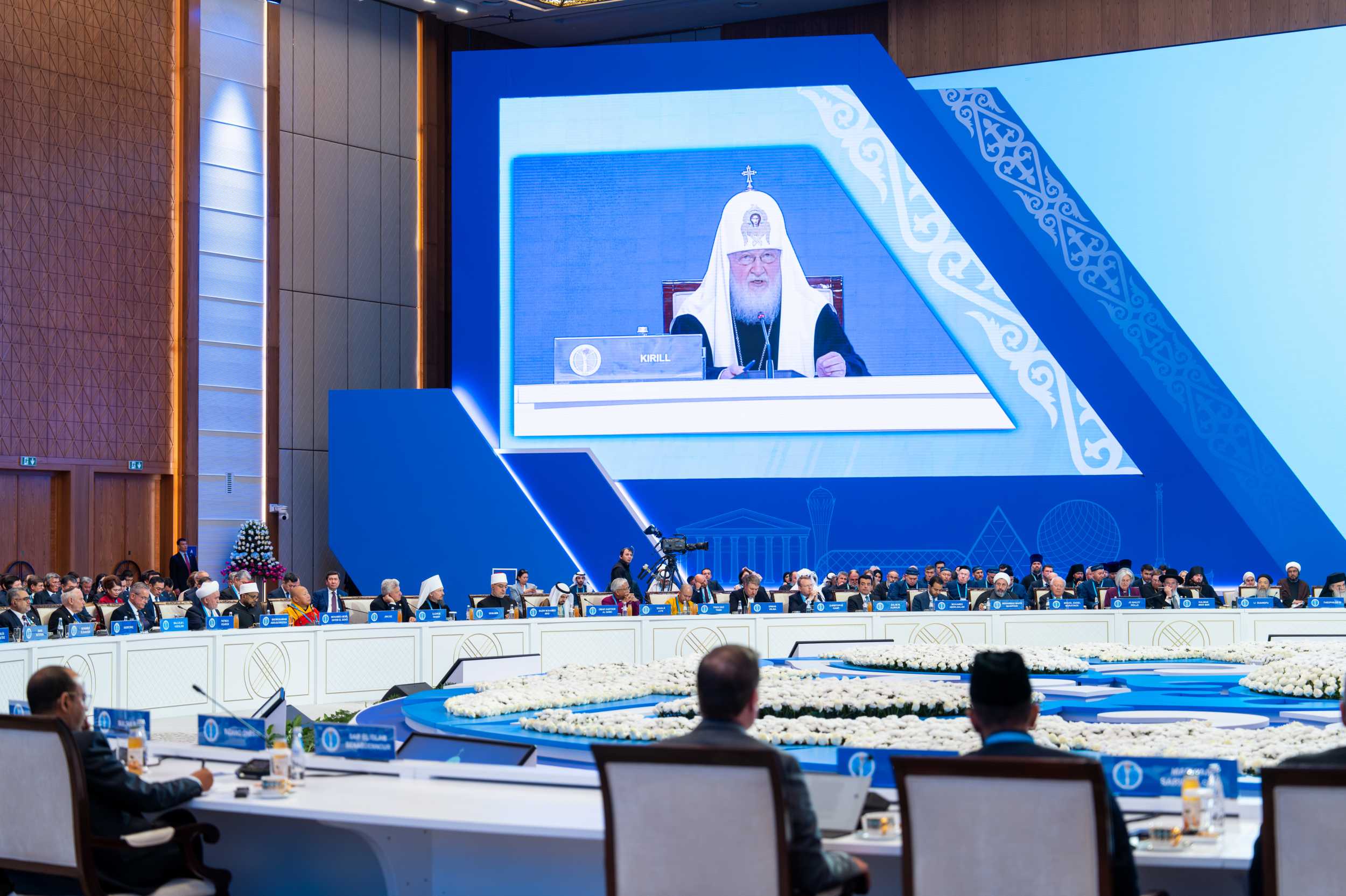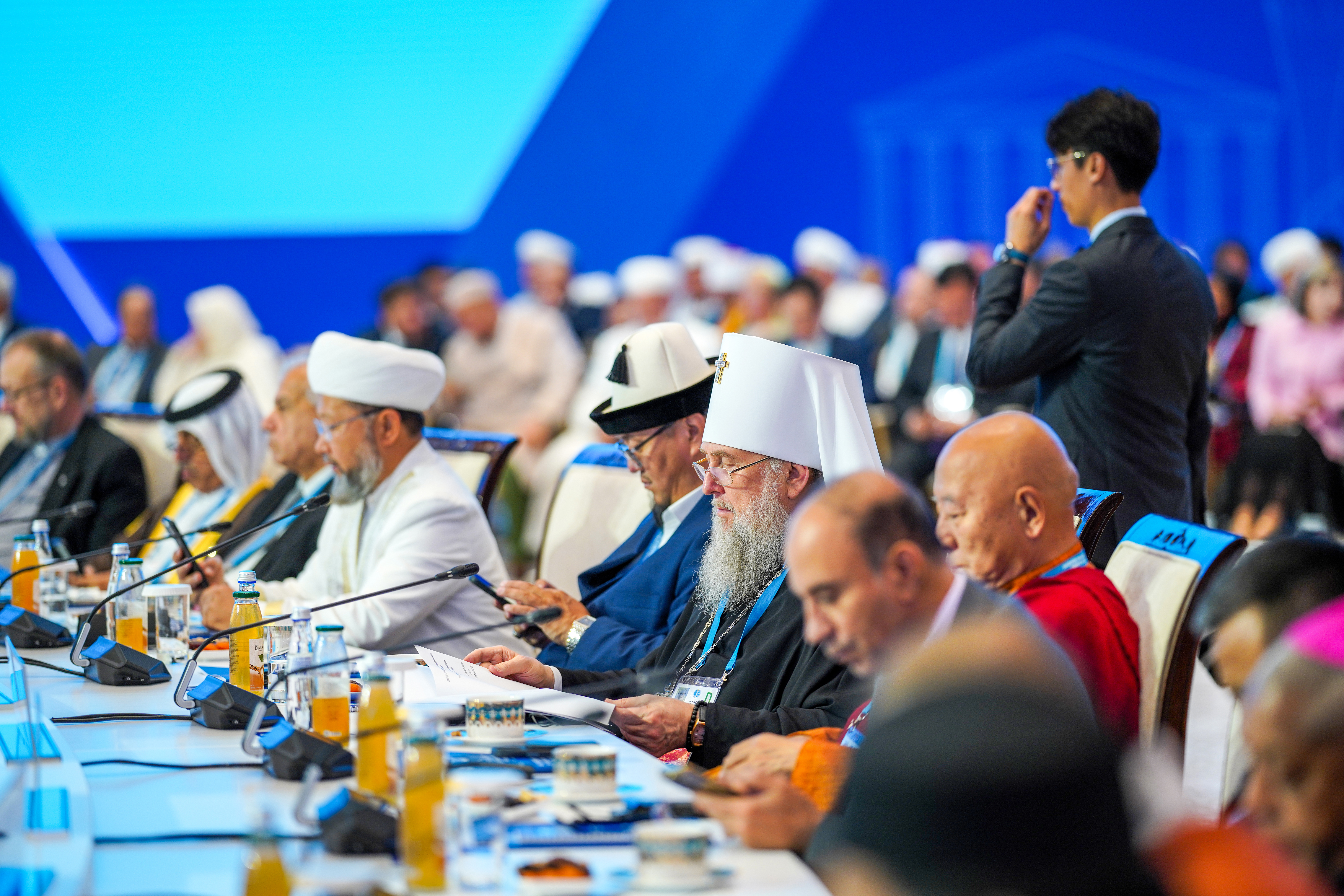 исламской лиги М.А. Аль-Исса, глава Дикастерии по межрелигиозному диалогу Римско-Католической Церкви кардинал Д.Д. Коовакад, который огласил приветствие Папы Льва XIV, Блаженнейший Патриарх Иерусалимский Феофил III, представитель Генерального секретаря ООН по Альянсу цивилизаций М.А. Моратинос, Католикос Великого Дома Киликийского Арам I, председатель Управления мусульман Кавказа шейх-уль-ислам Аллахшукюр Пашазаде, руководитель Организации по культуре и исламским связям Ирана ходжат-уль-ислам М.М. Иманипур, главный (ашкеназский) раввин Израиля К. Бер, председатель Духовного управления мусульман РФ муфтий шейх Равиль Гайнутдин, председатель Генерального управления по делам ислама, вакуфов и закята ОАЭ О.Х. Ад-Дареи, президент университета Somaiya Vidyavihar (Индия) С.Ш. Сомайя; президент Всемирного братства буддистов (Тайланд) Ф. Тайари, председатель Ассоциации даосистов Китая Ли Гуанфу и другие.